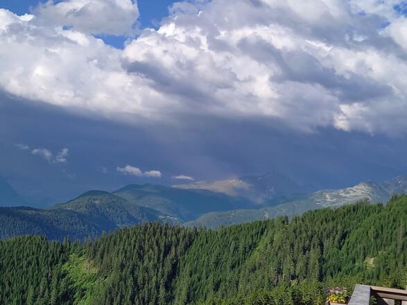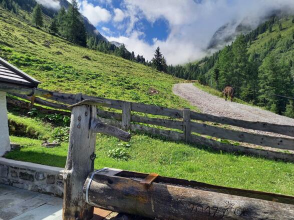 Von der Kirche zum Dreikirchenblick auf der Forststraße in Kehren bis zur Abzweigung Maisalm. Durch den Wald zur Reichenbachalm (nicht bewirtschaftet) und weiter zur Maisalm.