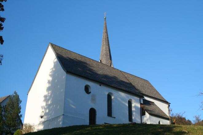 Rund 300 Meter später zweigen Sie nach einem Wegekreuz scharf rechts und bewältigen einen kurzen Anstieg zur Wallfahrtskirche Kappel hinauf. Die kleine Kirche ist ein guter Platz zum Verschnaufen und für eine herrliche Aussicht.