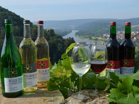 Durch den „Müllersweg“ biegen Sie an der Weinbergstraße mit den Wegesymbolen „Schmetterling“ und „Roter Strich“ links ab. Der geteerte Landwirtschaftsweg, der einen schönen Ausblick auf Mechenharder Felder bietet, führt an der „Ruhbank“ vorbei. Diese besteht aus zwei Steinbänken, die als Sitzgelegenheit bzw. zum Absetzen von Traglasten gedacht waren. Daneben befindet sich der Muttergottesbildstock von 1731. Von der Ruhbank aus folgen Sie weiter dem Wegsymbol „Schmetterling“ und erreichen die Mechenharder Weinberge. An einem herrlichen Laubwaldsaum entlang geht es bei bester Sicht auf das Maintal zum früheren Klingenberger Galgen. Von dort folgen Sie dem "Schmetterling" durch den Wald zum Waldrand oberhalb von Mechenhard. Auch hier wird Sie die tolle Aussicht begeistern, der Blick reicht bei gutem Wetter bis zum Taunus. Am Waldrand entlang geht es abwärts bis zur Wegemarkierung „Schluchtgraben“ und von dort nach rechts bis zur Ortsmitte Mechenhard und zurück zum Ausgangspunkt an der Kapelle.