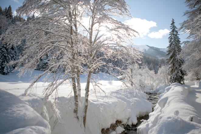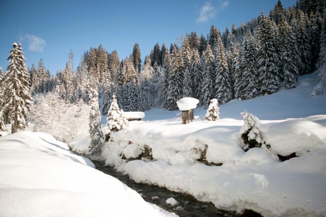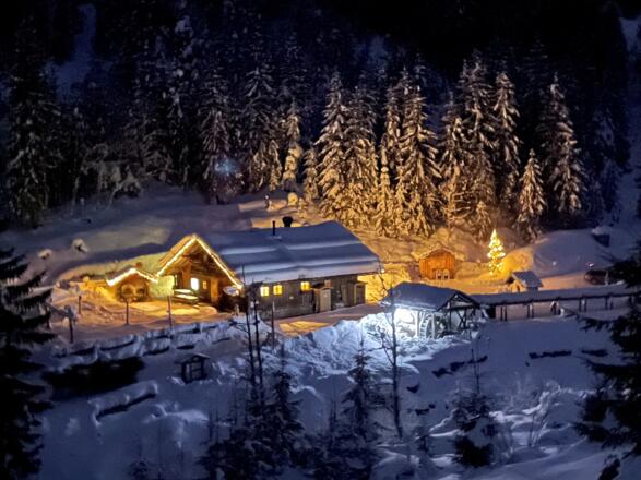 Romantische Wanderung durch Hütten und das tiefverschneite Schwarzleotal bis zum Unterberghaus