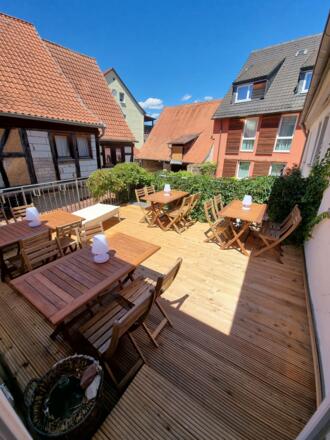 Im alten Teil des Hauses gibt es mehrere teils etwas windschiefe Gästezimmer mit sichtbarem Fachwerk und Bruchstein. Im modernen Rückgebäude ist der Großteil der Zimmer untergebracht, alle liebevoll und individuell eingerichtet.