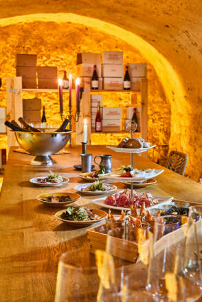 Es gibt mehreren Innenhöfen, Balkone und Freiflächen, einen überraschend großen Gewölbekeller mit einer Schatzkammer der sogar noch aus dem 15 Jahrhundert stammen soll.