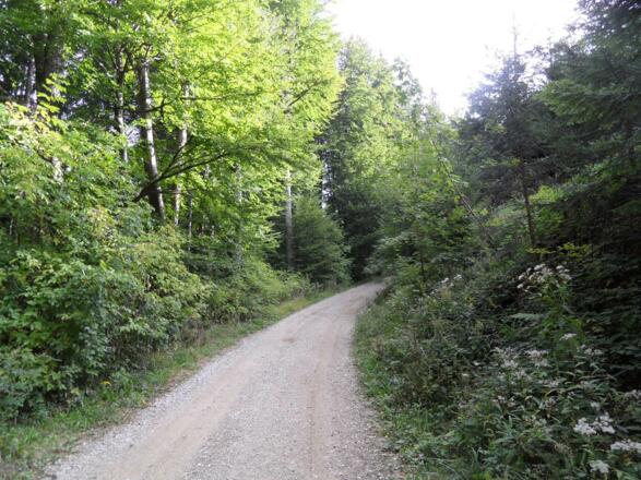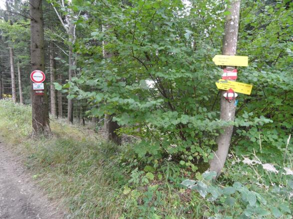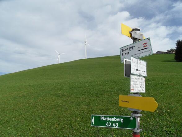 Ab hier beginnen die Wanderwege rund um den Damberg. Der Gehweg ist gleichzeitig als Mountainbikestrecke beschildert. Diesen Beschilderungen in Richtung Schwarzberg folgen wir durch die Nationalparkregion Kalkalpen.