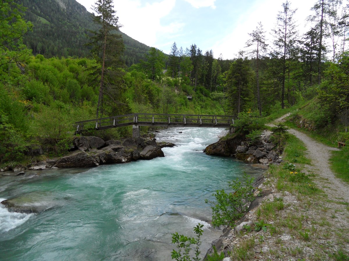 Nun geht es ins Stodertal. Auf dem als Flötzersteig bezeichneten Weg überqueren wir immer wieder die Steyr. Wir kommen zu Flötzerstube (Mostschank) und kommen etwa eine Stunde später in Hinterstoder (K) an.