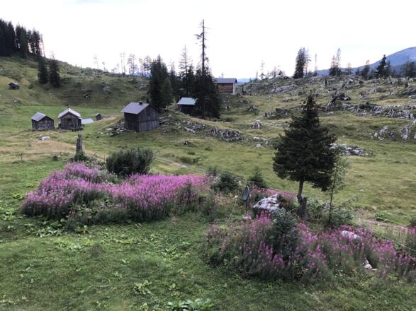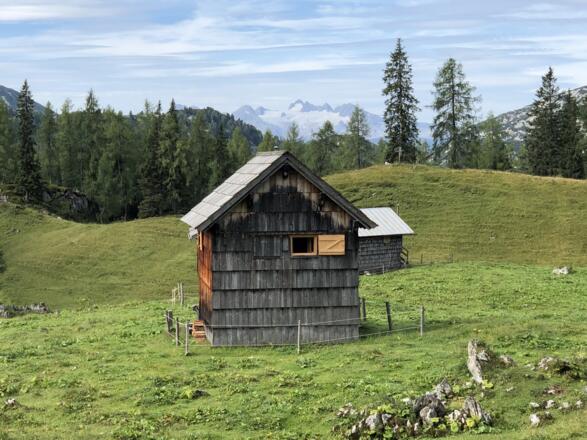 Dieser Abstieg zieht sich über weitere 1,5 Stunden durch Latschengelände, und wir sind froh, als wir schlussendlich die auf der wunderschönen, wildromantischen Ischleralm gelegenen Ischlerhütte (1368 m) erreichen. Die sympathische Hüttenwirtin empfängt uns mit zwei herrlich kühlen Bierflaschen, und das Glück nimmt auch angesichts des Abendessens nicht ab. Wir wissen, der Welser Höhenweg neigt sich bald seinem Ende zu, aber es ist ein schöner, idyllischer Ausklang.
