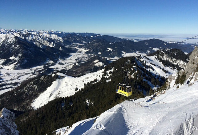 In nur 7 Minuten mit der Seilbahn von Bayrischzell-Osterhofen zur Wendelstein-Bergstation.