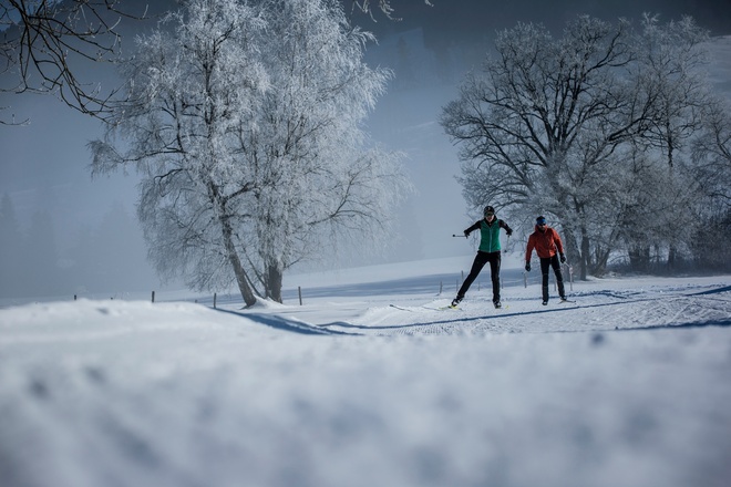 Auf 5,3 km führt die Rundloipe Richtung Stürzlham und am Waldrand zurück Richtung Weyarn. Es eröffnen sich traumhafte Ausblicke auf das Kloster Weyarn und in die Voralpen.