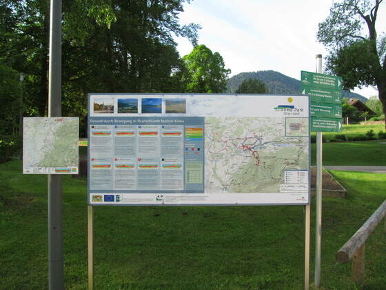 Über die B 472 nach Bad Heilbrunn, Parken am Wanderparkplatz neben dem Kursaal. Start auch im Ortsteil Ramsau möglich.