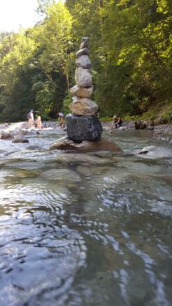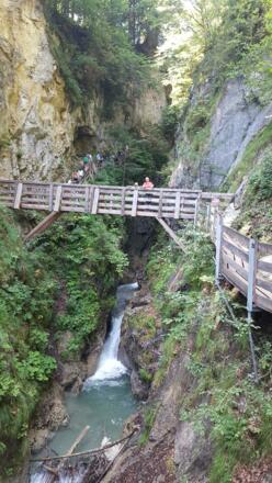 familienfreundliche Wanderung durch die Wolfsklamm mit beeindruckenden Ausblicken. Am Ende der Klamm kann man im Bach mit den Kindern Steinmännchen und Staudämme bauen.