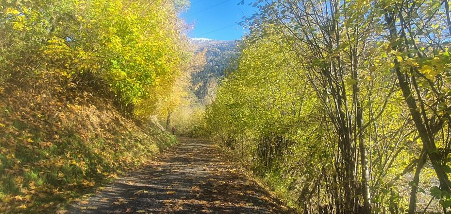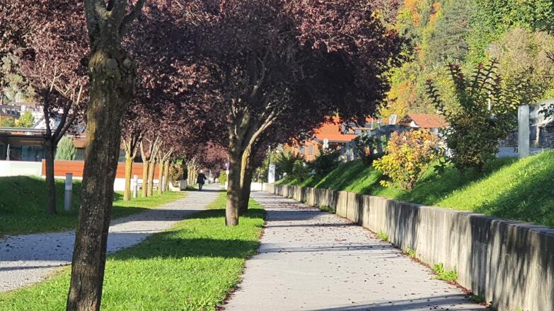 Die Tour verläuft in einer wunderschönen Landschaft, teils entlang des Flusses, mit kompaktem Kiesboden und ohne Seitengefälle, teils auf Asphalt. Der Schwierigkeitsgrad mit dem Rollstuhl ist selbst in den Kiesabschnitten leicht, da der Untergrund recht kompakt ist. Lediglich an einigen Stellen ist der Schwierigkeitsgrad mittel, da es teilweise bergauf geht (kurze Abschnitte, unter 20 m). Selbst ein Rollstuhlfahrer, der nicht übermäßig sportlich ist, kann ihn alleine bewältigen, ohne unbedingt die Hilfe einer Begleitperson zu benötigen. Da der Boden aus Kies besteht, rüttelt es ein wenig. Typ: Ich habe meine Füße mit einem festen Band versehen, um einen angenehmen Spaziergang zu haben.