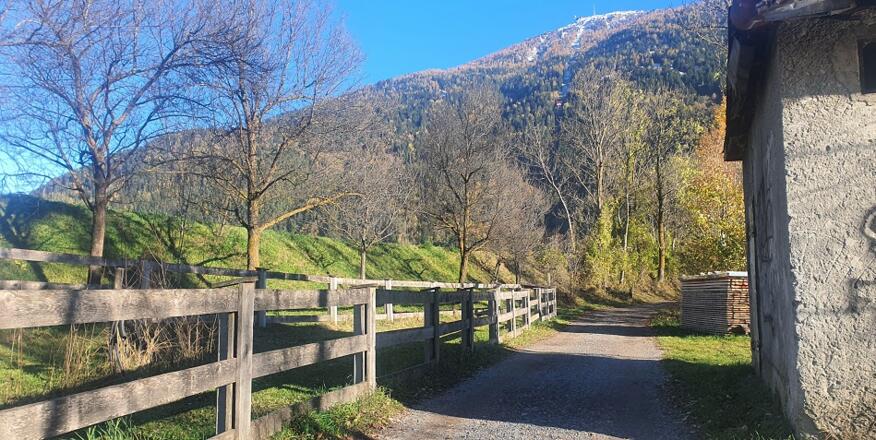 Lutz-Parkplatz oder im Dorf-Mitte, beim Pavillon. Beide mit reserviertem. Zwischen Lutz und dem Gashaus gegenüber geht der Weg zum Fluss hinunter. Hier kann man die Runde starten.nbarrierefreien Parkplatz und barrierefreies WC (Öffnungszeit beachten)