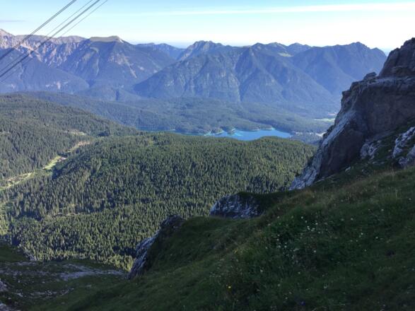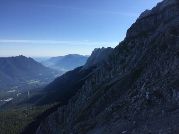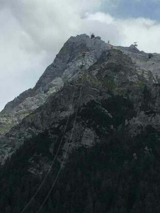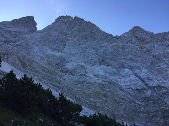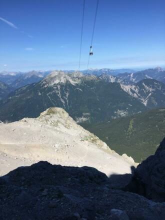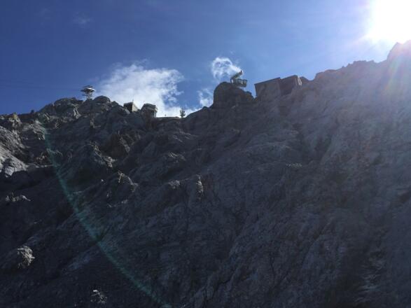 Gipfeltour auf die Zugspitze von der österreichischen Seite aus unter der Tiroler Zugspitzbahn hindurch.