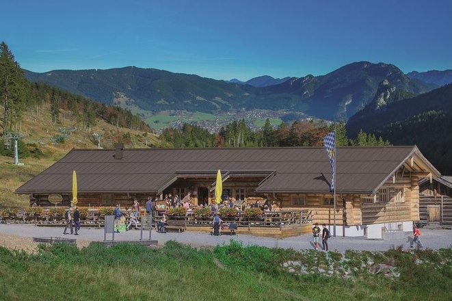 Wir starten am Bahnhof in Oberammergau, überqueren zunächst die Ammer und wandern hinauf zur Talstation der Kolbenlifte. Anschließend folgen wir kurz dem Grottenweg, bevor wir nach rechts abbiegen zum Kolbensattel. Der Weg führt nun auf gleicher Höhe bleibend durch den Nordhang des Sonnenbergs und an der Kolbensattelhütte vorbei bis zur Fahrstraße, die an der Kreuzung von rechts herkommt. Nun geht es etwas steiler hinauf und nach einigen Höhenmetern erreichen wir das August-Schuster-Haus.